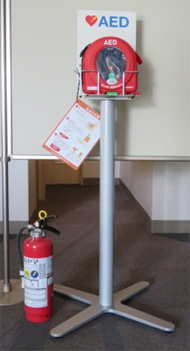 AEDを増設。古河事業所で14台(全社で27台) 万が一のときに5分以内に電気ショックが可能な場所に配置 |
