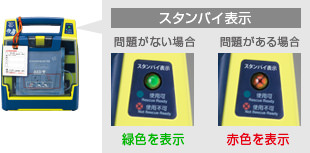 異常が見つかった場合は、スタンバイ表示が赤色に変ります。さらに30秒間隔で断続的なアラーム(ビープ)音を発してお知らせします。
